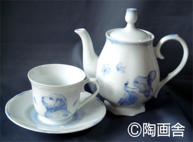 前回に仕上げた犬のカップ&ソーサーが出来上がっていました。