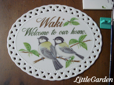 いつもの小さいお皿は2回焼成ですが、ちょっと描き込んだ飾り皿やウェルカム・プレートは3〜4回筆を重ねて焼成します。