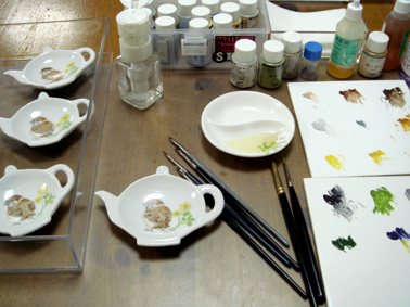 焼成温度が1250度と高い為、絵の具も特別な物ですし、磁器も選ばないといけません。