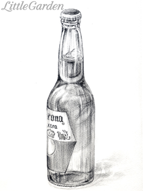この瓶はビールの色が綺麗で、色鉛筆でもスケッチしてみたい気もしますが。