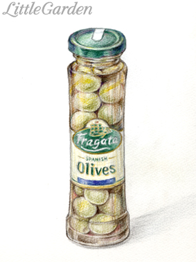 これも周りのオリーブ•オイルがキレイな色で、描いていて楽しかった。