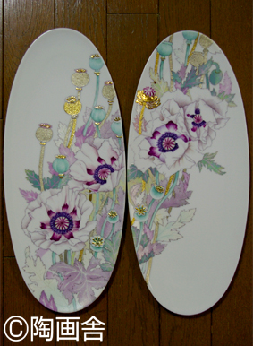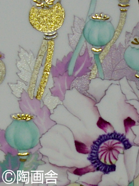上絵付けの絵の具で描いたのは、ポピーの花と緑のつぼみ。