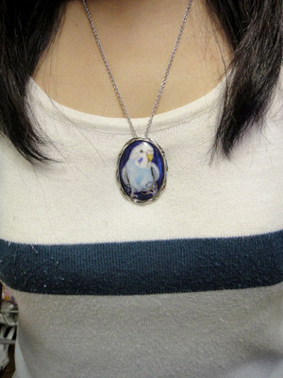 京都に出発する前に、セキセイの「ぽんぴーちゃん」のペンダントを送り出しました。
