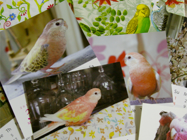 お家のアキクサインコさんがモデルさんをしているカレンダーを送ってくださったので、ご紹介します。