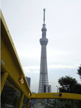横のはとバス乗り場を覗いて見ると運良く空きがあったので、スカイツリーを廻る1時間のコースに乗車してみる事に。