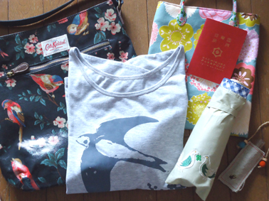 Cath Kidstonの鳥柄のショルダー・バッグと、台東デザイナーズ・ビレッジの若い作家さんのツバメTシャツに巡り合いました。