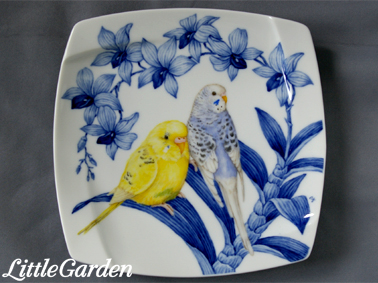 セキセイのるなちゃん(黄ハル)&キュートちゃん(パイド)の飾り皿です。