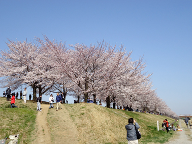 荒川と人工の新河岸川に挟まれたスーパー堤防なのですが、この季節はソメイヨシノが綺麗です。