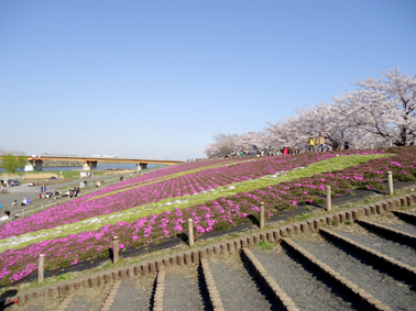 土手の斜面には、手入れされた芝桜もありました。