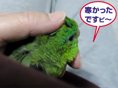 ワカケちゃんも羽がボロボロになっていました。