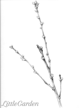 花が開く気配が無いので枝ぶりを中心に描いてみる事にして、枝分かれしている物をチョイス。
