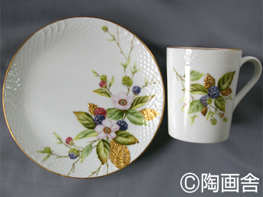 それを一旦焼成した後、金彩をしてからまた焼成。