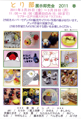 週末の25〜28日に、江戸川橋で「とり部即売会2011春」というイベントがあるそうで。