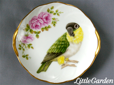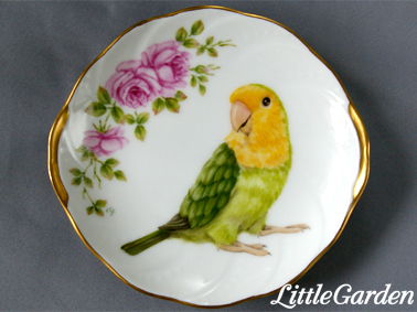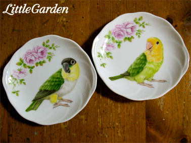7月に阪神デパート梅田本店で開催される「小鳥の作品展」の宣伝に使う写真の為に、インコさんのお皿も描き始めました。