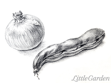 モチーフは玉ねぎとそら豆で、先生は「単純な形ですから」とおっしゃいましたが。