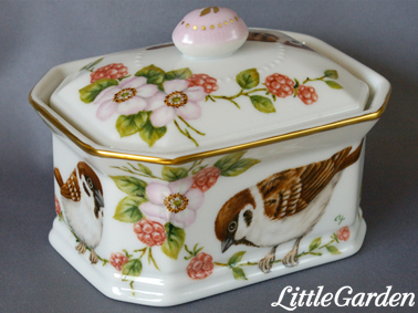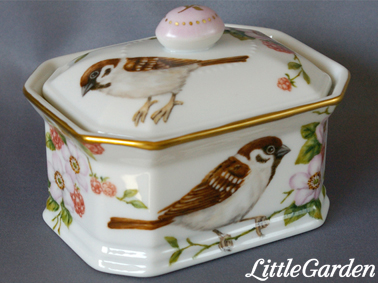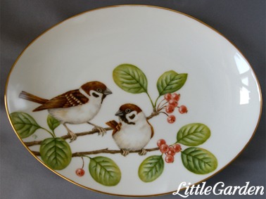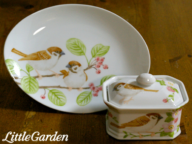 制作中のスズメちゃんのプレートとキャンディ・ボックスは、後は金彩を残すのみになりました。