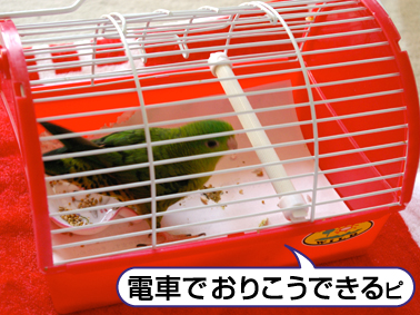 電車に座って時々バッグを覗いて見ると、嬉しそうにケージの天井にぶら下がってこちらを見ます。