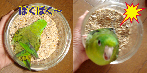 梅ちゃんはシードを入れた瓶と、人の間を鳴きながら何度も行ったり来たりで‥蓋を開けてと、訴えていました。