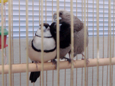 お友達のヨーロッパ十姉妹さん達とは、とても仲良し。