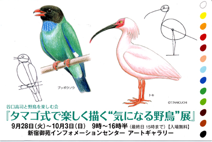 「タマゴ式で楽しく描く“気になる野鳥”展」は9月28(火)〜10月3日(日)、今年も新宿御苑インフォメーションセンター・アートギャラリーで開催されます。