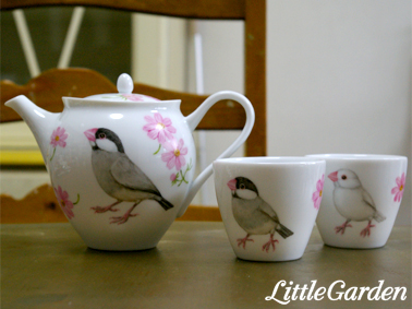 来月の伊勢丹デパート向けに文鳥さんとコスモスの、ティーポット&お湯のみを作っています。