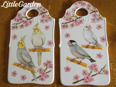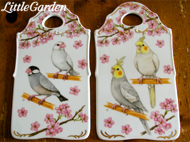 ポットのこちら側は桜文鳥さんですが、向こう側の面はポーズ違いで白文鳥さん。