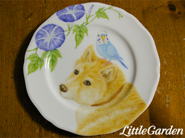 ケーキ・プレートのサイズで、描き込むにはインコさんは小さく、難しい〜。