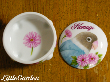 内側の底部分にも小麦ちゃんが淋しく無いよう、ガーベラを1輪描きました。