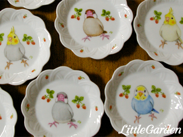 鳥社員さん達を見ながらお茶できるカフェなので、お皿の絵は鳥社員さん達がモデルさんです。
