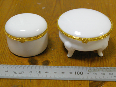 脚付きの方は直径7センチ、小さくて高さのある方は直径5.5センチ程度の小さな物。
