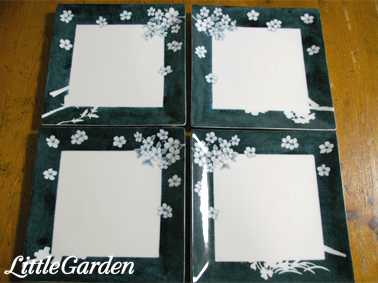 他の4枚は絵の具でアクセントを入れて、同時にフチ部分にプラチナ彩をして、最後の焼成に入るのですが。