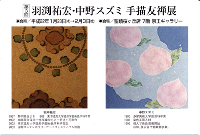 同じ工房で修行した羽渕裕宏氏との2人展で、同じ手描き友禅でも全くテイストが違って各々にステキです。