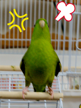 出て来たところをオットが手に乗せようとすると威嚇〜。