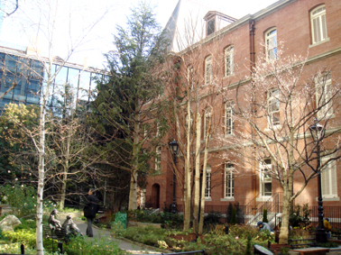 手前に背の高いビルもあるのですが、外国の中庭のような空間。