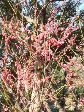 良いお天気だったので上野のお山を不忍池に抜けると、紅梅が満開。
