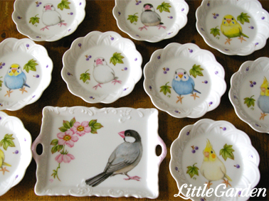 リトルガーデンからは花型の小さなお皿やミルクピッチャーの鳥さん達が、たくさん飛び立って行きました。