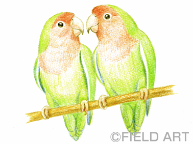 いつも1羽描きが多いですが、さすがにラブバードと名のつく鳥さんはペア描きでした。