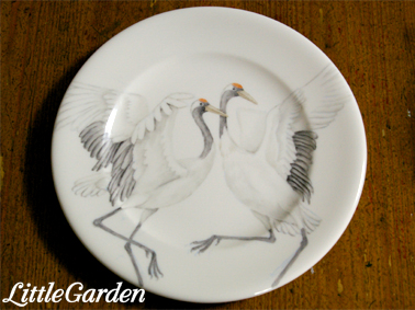 深い考えも無いのですが、家にあった16センチ程度のお皿でお目出度い鶴を。
