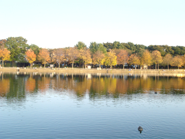 浮間公園はすっかり秋色で、水面に紅葉しかけた木々が写って綺麗。