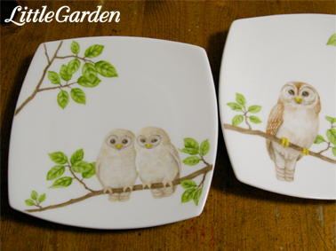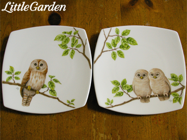 デパートのバード・アート展の準備は一旦お休みですが、スズメさんの銘々皿とフクロウさんの親子のお皿は出来上がっています。