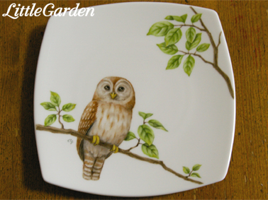 後から描き始めたちびフクロウさんのお皿も、まだ途中ですがママフクロウさんに追い着きました。