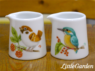 ミルクピッチャーはカワセミと、毎度お馴染みのスズメちゃんです。