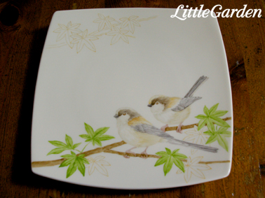 家にあったナルミのボーン・チャイナのお皿を使いましたが、大きいので2羽描きに。