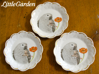 鳥さんの体はグレーですが、ポピーの赤と金彩で鮮やかな印象です。