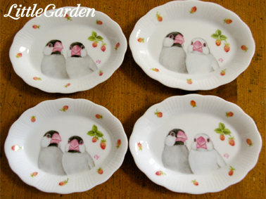 文鳥さんが2羽のお皿は前回好評だったので、ポーズを少し変えてまた作ってみました。