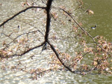 この時は桜の花はまだ少ないですが、枝の別れ目にシジュウカラさんが居るのが見えますか?