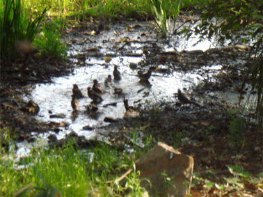 柵ごしに覗くとムクドリさんの群れが水浴び中で、それを見るのも初めての事です。