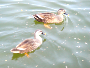 カルガモさんが足をバタバタして、元気に泳いでいましたよ。