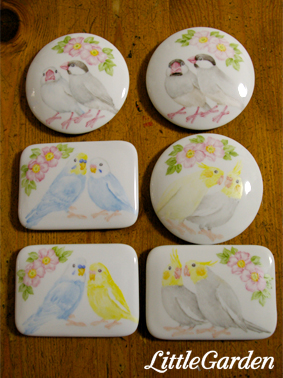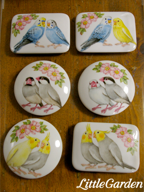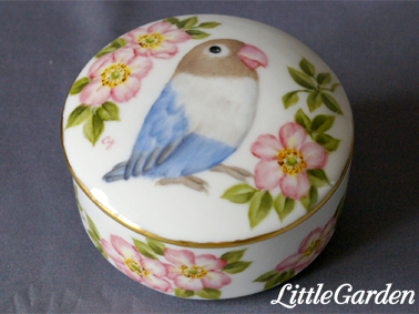 いつものりんごのお皿やハートのお皿の他に、ブルーボタンさんのフタ付きBOXは鳥種的にもアイテム的にも珍しいのでは?