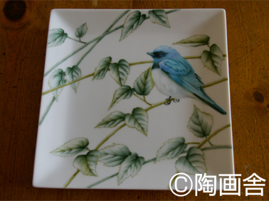 上の画像は「アニマル&プランツ」クラスのオオルリのお皿。